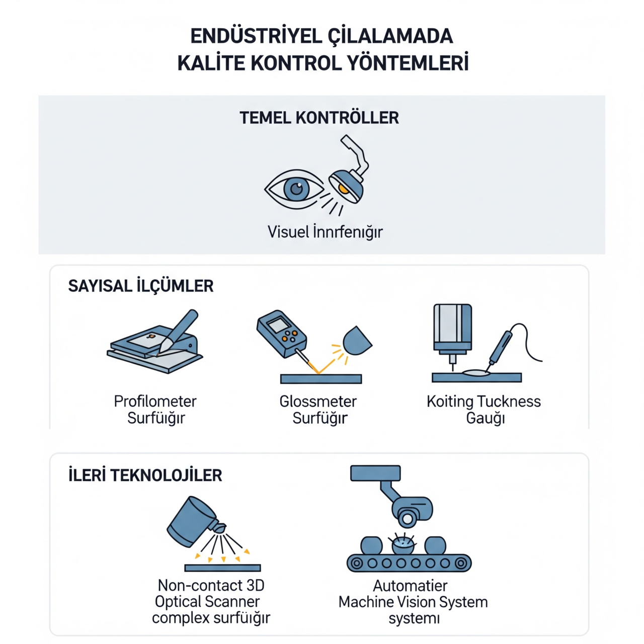 - Eğitimli Gözle Muayene: Her zaman ilk adımdır. Deneyimli bir operatör, doğru aydınlatma koşulları altında (özel kontrol lambaları kullanarak) hareler, çizikler ve dalgalanmalar gibi birçok büyük kusuru tespit edebilir. Ancak bu yöntem tamamen özneldir ve operatörün tecrübesine bağlıdır.