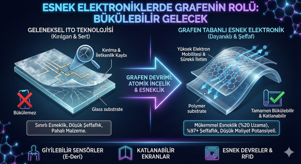Teknolojinin yeni hedefi “Form Faktörü Özgürlüğü”dür. Yani bileğinize sarılan telefonlar, kıyafetinize entegre sensörler veya gazete gibi katlanan tabletler. Bu vizyonun önündeki en büyük engel olan “kırılgan iletkenler” sorunu, karbonun 2 boyutlu mucizesi Grafen ile çözülüyor.