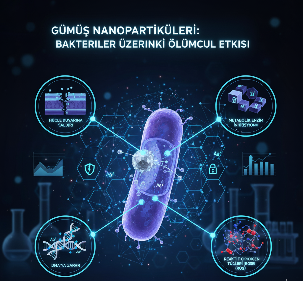 Gümüş nanopartiküllerinin bakteriler üzerindeki ölümcül etkisi, basit bir zehirlenmeden çok daha fazlasıdır. Bu, hücrenin savunmasını çökerten, enerji kaynaklarını kesen, genetik kodunu kilitleyen ve onu içeriden yok eden mükemmel planlanmış, çok aşamalı bir biyokimyasal saldırıdır. Süper bakterilere karşı verdiğimiz savaşta, bu mikroskobik katillerin gücünü anlamak ve doğru şekilde kullanmak, gelecekte milyonlarca hayatı kurtarabilir.