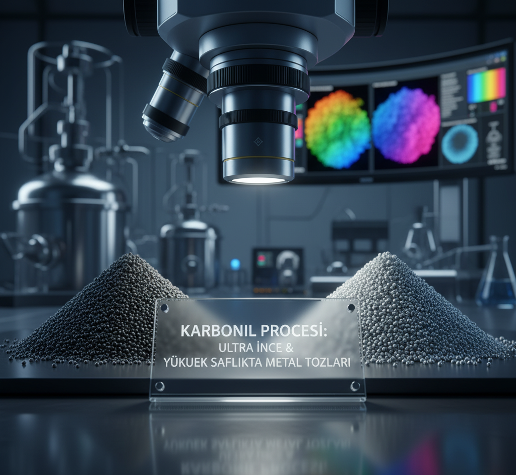 Modern endüstri, en zorlu uygulamaların üstesinden gelebilecek olağanüstü özelliklere sahip malzemeler talep etmektedir. Bu talebi karşılayan en eşsiz üretim yöntemlerinden biri, kimyasal buhar biriktirme (CVD) prensibine dayanan Karbonil Prosesi‘dir. Özellikle demir ve nikel metalleri için kullanılan bu sofistike yöntem, atomizasyon veya elektroliz gibi geleneksel metotlarla ulaşılamayan bir saflık ve incelik seviyesi sunar. Sonuç, Metal Enjeksiyon Kalıplama (MIM) ve ileri manyetik malzemeler gibi yüksek teknoloji alanlarının temel taşı olan ultra ince, küresel ve neredeyse mükemmel saflıkta metal tozlarıdır.