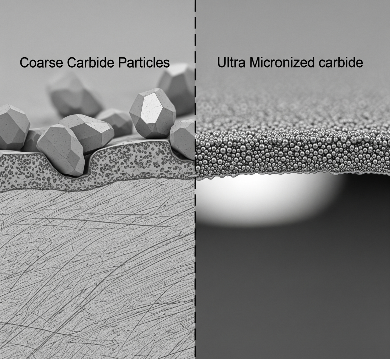 Parlatma kalitesinin en önemli göstergelerinden biri olan yüzey pürüzlülüğü (Ra), yüzeydeki mikro ölçekli tepe ve vadilerin ortalama yüksekliğidir. Daha küçük karbür partikülleri, yüzeyde daha sığ ve daha az belirgin çizikler oluşturarak yüzey pürüzlülüğünü önemli ölçüde azaltır. İstenilen ayna parlaklığında ve ultra pürüzsüz yüzeylerin elde edilmesi için nanometre veya mikron altı boyutlardaki karbür tozları kullanılır.