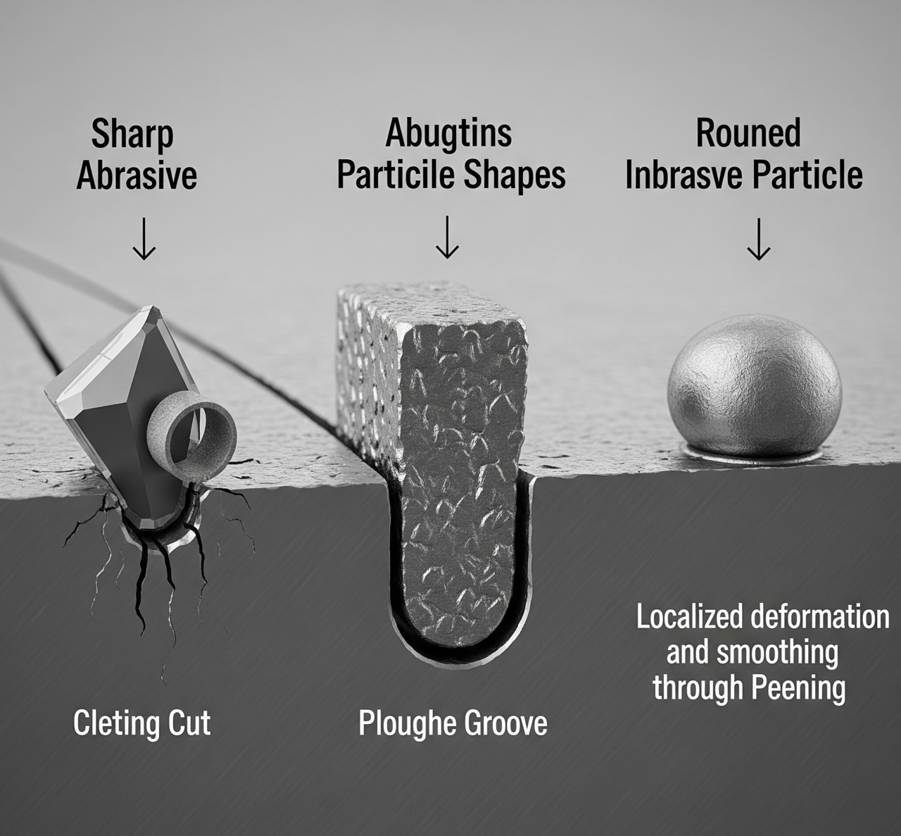 Bir aşındırma işleminin verimliliği, temel olarak partikülün hedef yüzeyle nasıl etkileşime girdiğine bağlıdır. İşte burada partikül şekli devreye girer. Temelde iki ana etkileşim mekanizması vardır: mikro-kesme ve sürtünme/ezme.