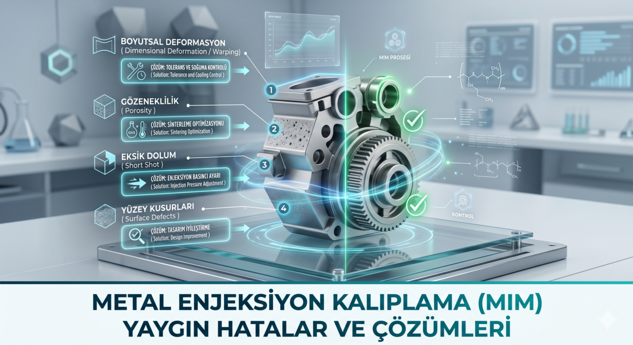 Bununla birlikte, MIM süreci son derece karmaşık ve hassastır; hammadde (feedstock) hazırlamadan sinterlemeye kadar her aşama, nihai parçanın kalitesini doğrudan etkileyen kritik parametrelere sahiptir. Bir aşamada yapılan küçük bir hata, nihai parçada yapısal zayıflıklara, boyutsal tutarsızlıklara veya yüzey kusurlarına yol açabilir. Bu makale, MIM sürecinde en sık karşılaşılan hataları bilimsel bir perspektifle analiz ederek, bu hataların kök nedenlerini ve endüstriyel en iyi uygulamalara dayalı somut çözümlerini sunmayı amaçlamaktadır.