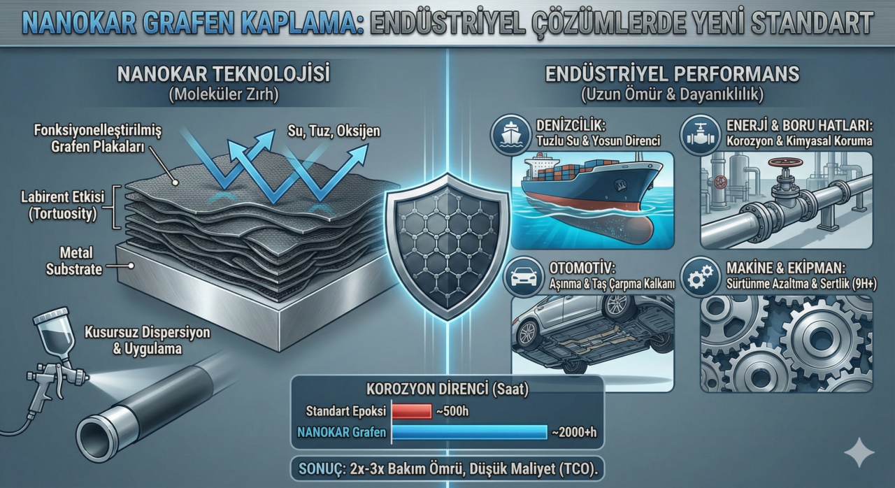 Nanokar Grafen Kaplama, bir boyadan fazlasıdır; varlıklarınız için bir sigortadır. Endüstriyel tesislerinizi ve ürünlerinizi nano-teknolojinin gücüyle korumak, rekabetin giderek arttığı dünyada size operasyonel bir üstünlük sağlar.