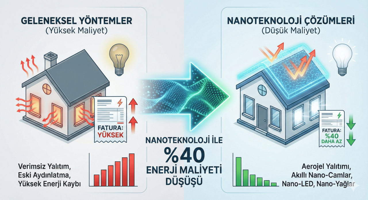 Artan elektrik ve doğalgaz faturaları, hem ev sahiplerini hem de fabrika yöneticilerini alternatif çözümler aramaya itiyor. Geleneksel yalıtım yöntemleri veya standart LED ampuller artık tek başına yeterli değil. Bilim dünyasının “küçük devi” nanoteknoloji, enerji kayıplarını minimize ederek toplam maliyetlerde %40’a varan tasarruf sağlama potansiyeliyle sahneye çıkıyor.