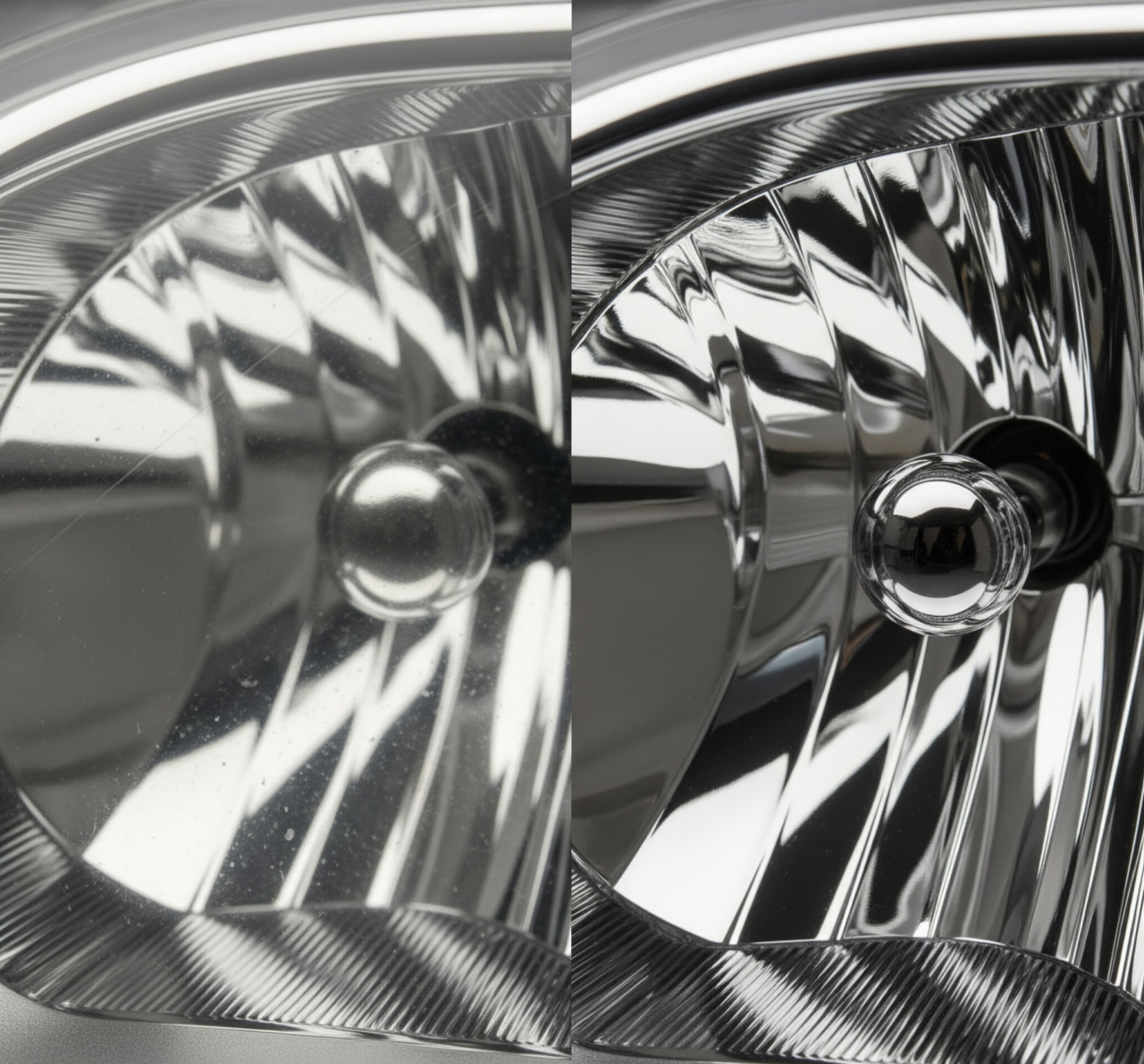 Otomotiv far reflektörleri genellikle yüksek hassasiyetli enjeksiyon kalıplama yöntemiyle termoplastik polimerlerden (örneğin polikarbonat) üretilir. Kalıptan çıkan bu parçaların yüzeyi, mikroskobik düzeyde pürüzlüdür ve istenen yansıtıcılık seviyesine sahip değildir. İşte bu noktada, özel parlatma işlemleri devreye girer.