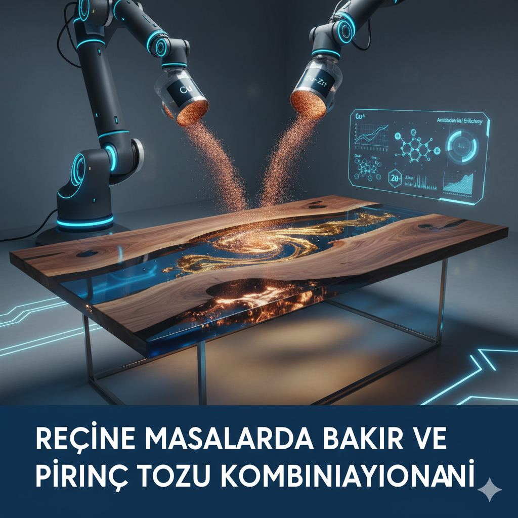 Reçine (epoksi) mobilya tasarımı, son on yılda basit bir hobiden milyar dolarlık bir endüstriyel tasarım dalına dönüştü. Bu yükselişin arkasındaki en büyük güç, polimerlerin metalik pigmentlerle olan büyüleyici etkileşimidir. Özellikle bakır ve pirinç tozları, sadece görsel bir şölen sunmakla kalmaz, aynı zamanda malzemenin yapısal karakterini de değiştirir.