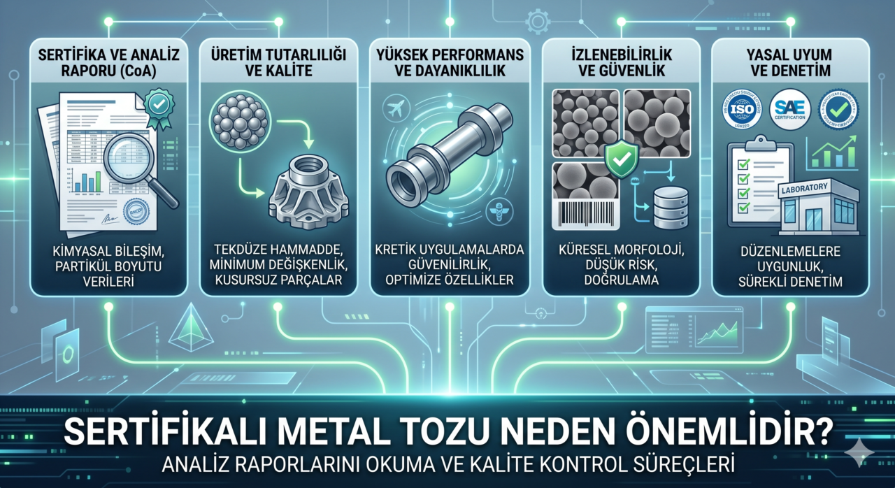 Metal tozu sertifikasyonu, sadece endüstriyel bir bürokrasi değildir. Bu, mikroskobik düzeyde gerçekleşen karmaşık metalurjik süreçleri kontrol altına almanın, öngörülebilir hale getirmenin ve insan hayatını korumanın bilimsel yoludur.