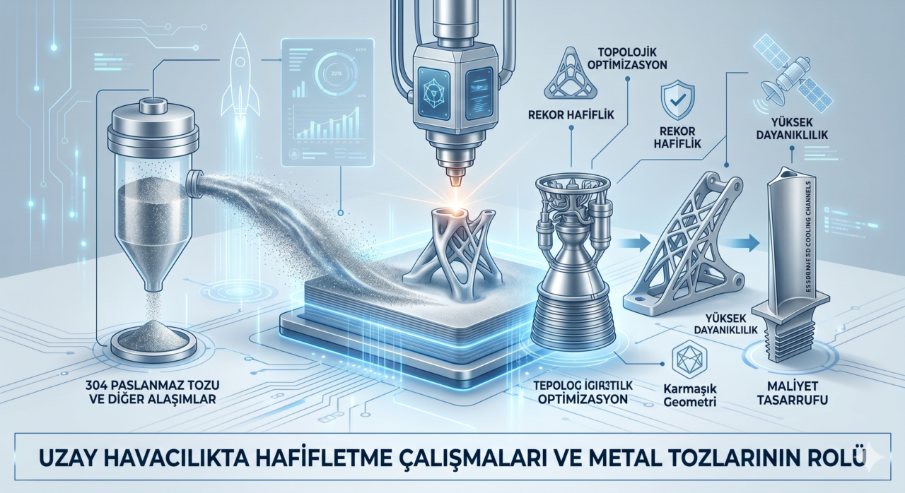 Uzay havacılığında hafifletme, bir matematik oyunundan çok daha fazlasıdır; bu, sınırları aşmanın anahtarıdır. Metal tozları, dijital hayalleri titanyum ve çelik gerçekliğine dönüştürürken, havacılık mühendisliğine daha önce hiç sahip olmadığı bir esneklik kazandırıyor.