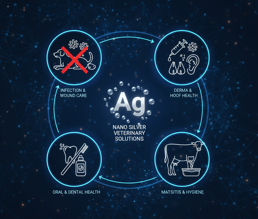 - Mastitis (Meme İltihabı) Kontrolü: Süt endüstrisinin en büyük sorunlarından biridir. Nano gümüş içeren sağım öncesi ve sonrası kullanılan meme dezenfektanları (teat dip), enfeksiyon riskini büyük ölçüde azaltır.