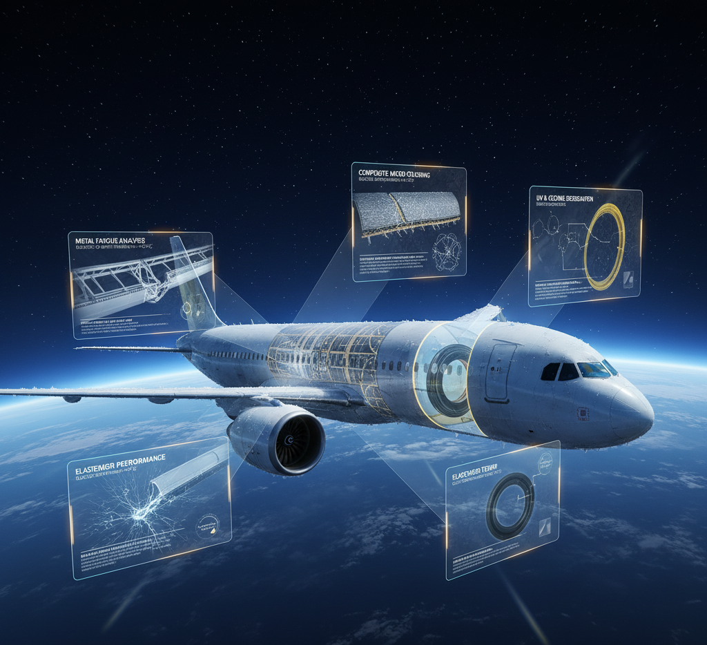 Uçaklardaki contalar, O-ringler, yakıt hortumları ve kablo izolasyonları gibi yüzlerce bileşen, elastomer ve polimer (plastik) malzemelerden yapılır. Bu malzemelerin temel görevi esnekliklerini korumaktır. Ancak düşük sıcaklıklar, bu esnekliği doğrudan tehdit eder.